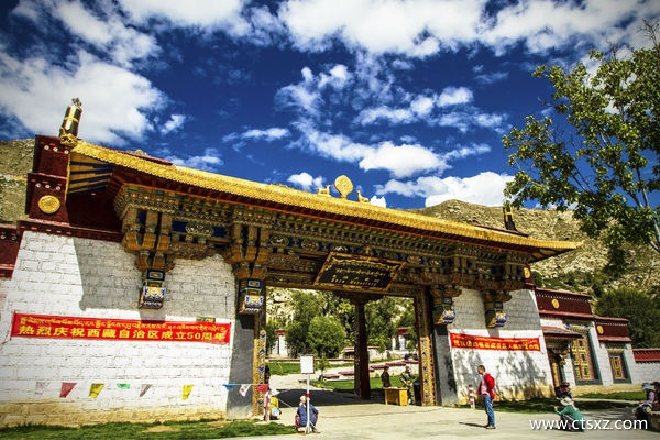 明永樂十七年(1419),宗喀巴弟子絳欽卻杰興建,成于宣德九年(1434)。后絳欽卻杰應(yīng)召赴北京,受封大慈法王。回藏后將欽賜經(jīng)像等珍藏于寺內(nèi),至今仍存。寺內(nèi)有結(jié)巴、麥巴、阿巴三札倉(cāng)(經(jīng)院)。其全盛期寺中有僧8000余,規(guī)模略次于哲蚌寺。