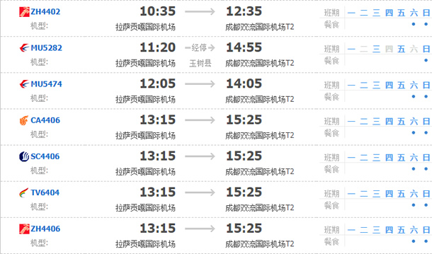 以上就是拉薩飛成都的航班時(shí)刻表,起飛時(shí)間,到達(dá)時(shí)間,及固定航班日期。
